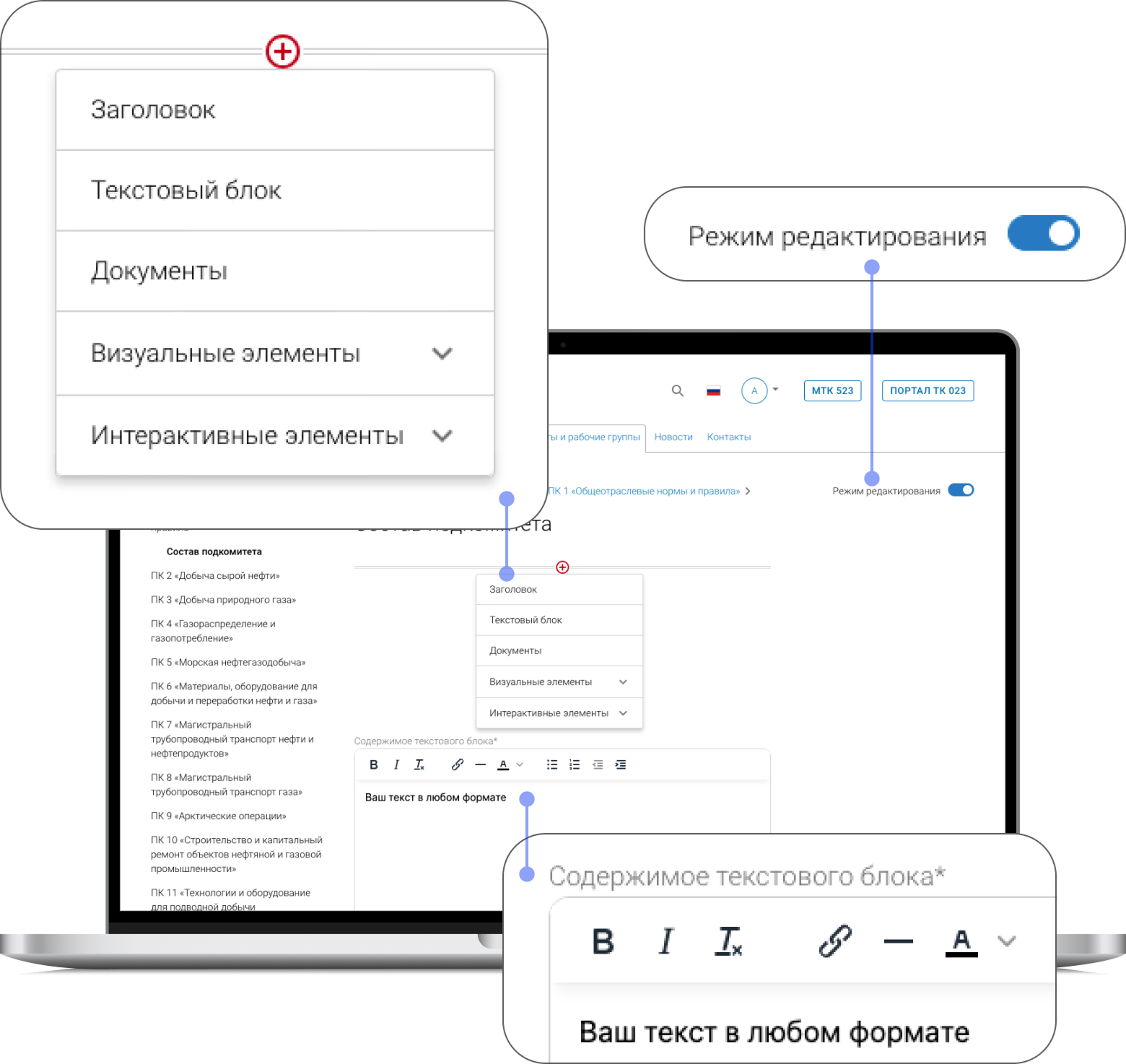 Весь контент автоматически подстраивается под ваш фирменный стиль, обеспечивая профессиональный вид сайта. Публикация нового материала займет не больше 30 секунд.