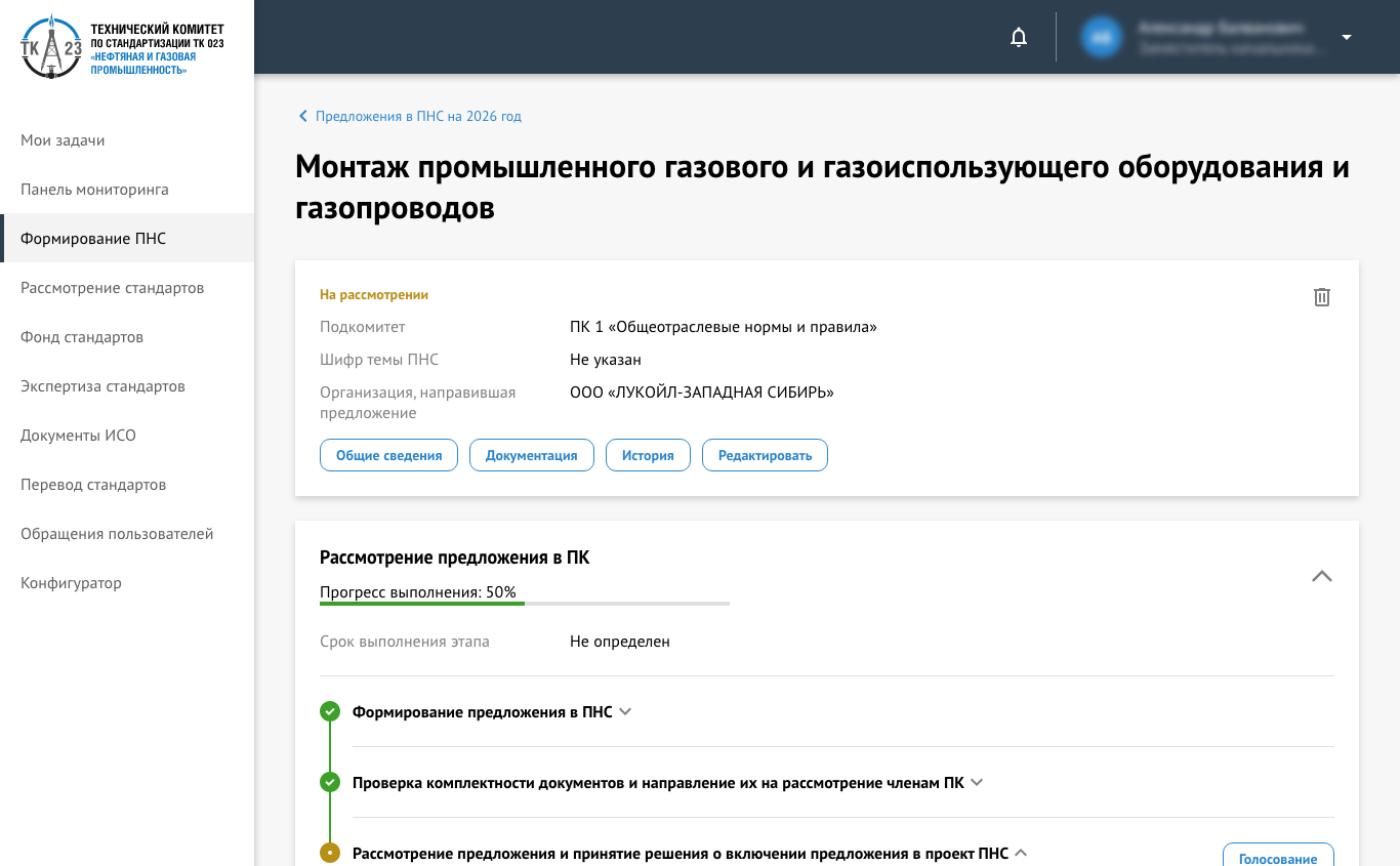 Разработанный совместными силами ЧУ СЦ «ВНИИГАЗ-Сертификат», ООО «Газпром ВНИИГАЗ» и Вашего Общества и внедренный в практическую деятельность технического комитета по стандартизации ТК 023 «Нефтяная и газовая промышленность» Интернет-портал ТК 023 содействует достижению целей ТК 023 при разработке проектов национальных, межгосударственных стандартов, предварительных национальных стандартов и изменений к ним, а также выполнения других работ по стандартизации в соответствии с ГОСТ Р 1.- 2020.
